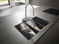 The aerator on the faucet’s spout mixes water with air to create a plump, pleasant water spray. The aerator can be removed so that limescale residues can be cleaned out of the water spout. Once cleaned, it can be reinserted. The aerator in the Rebris range, for example, is easy to remove from the faucet using a coin for simple cleaning.