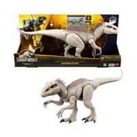 Be a part of the Jurassic World adventure with the ultimate in dinosaur battle action! An abomination hybrid of the villainous Indominus Rex and the vicious Velociraptor, Indoraptor is the most terrifying and deadliest dinosaur ever masterminded. Inspired by the film, this larger-size Indominus Villain dinosaur wreaks havoc and fear—everywhere! Ominous features include realistic slick black scales, longer arms with dagger-like claws and push button activation. To activate, move the back button to operate the mouth and activate sound effects; also use the button to make Indominus bend down, pic