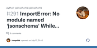 It says I'm missing jsonschema module. I installed it, reinstall only says "equirement already satisfied". But then my program still says I'm missing the module.