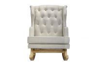The Empire Rocker's oversized tufted wing-back frame is finely upholstered in a durable blend of polyester, linen and viscose, ensuring a comfortable flat back form that provides the right amount of give.