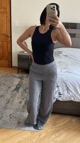 Women’s Zara wide Leg blue and white printed pants. Slit on lower leg. Satin like material. Great condition. Size large. Please see photos for measurements to ensure fit. Would be great for a European vacation!