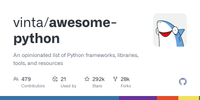 GitHub - vinta/awesome-python: An opinionated list of Python frameworks, libraries, tools, and resources · GitHub
