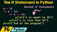 The if statement evaluates a condition (an expression that results in True or False). If the condition is true, the code block inside the if statement is executed. If the condition is false, the code block is skipped. ... Python relies on indentation (whitespace at the beginning of a line) to define scope in the code.