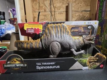 Jurassic World Rebirth Tail Thrasher Spinosaurus Action Figure, Dinosaur Toy with 2 Attack Moves