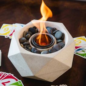 One of our top-rated fire pits is the Tabletop Fire Pit Bowl, 15 in. Concrete Tabletop Fireplace Indoor Outdoor Decor, Portable Rubbing Alcohol Burner Smores.