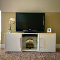 A fabulous combination for a BESTÅ TV unit is to use a BESTÅ TV bench, with NANNARP legs, and three doors to create a sleek entertainment center for under $300. But, on IKEA Hackers, there is more than one way to make a media console.