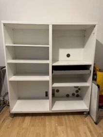 KALLAX / LINNMON Desk combination - white 77x139x147 cm. You can use these fittings to connect LAGKAPTEN or LINMON table top to a KALLAX shelf unit of your choice. Choose whether you want to place it vertically or horizontally and use it as a shelf or sideboard.