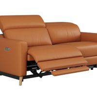 When space is an issue, this cognac leather loveseat will meet all of your luxurious relaxation needs with a minimal footprint, and look great while doing it. Introducing the Elodie Leather Sofa where style meets innovation and comfort. Crafted from supple, Italian Nappa 11000 Top Grain Leather on all seating surfaces, this contemporary piece boasts both elegance and practicality. Dive into relaxation with adjustable manual headrests and seamless electric recliners discreetly nestled within the sleek design. Engineered with an upscale Kiln Dried Hardwood frame, and light timber legs, it combin