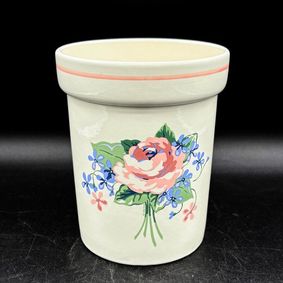 Large Ceramic Kitchen Utensil Holder with Vintage Old-Fashioned Floral Patter...