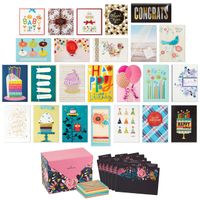 Assortment includes 24 cards (4 of each design) and 24 envelopes. Cards are blank inside for your own happy message. Never miss another birthday! Keep birthday cards on hand all year with a single box.