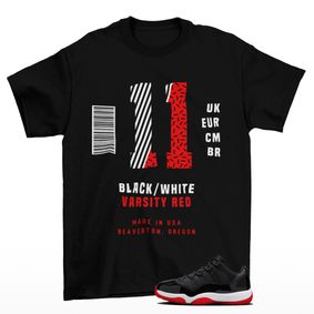 The Air Jordan 11 Retro Low 'Concord-Bred' combines two iconic OG colorways of the original mid-top silhouette. The upper replicates the look of the Concord Air Jordan 11, featuring a white leather upper with a signature patent leather overlay in contrasting black and unexpected red branding elements at the tongue and heel. A white foam midsole gives way to a semi-translucent red rubber outsole, borrowed from the Bred Air Jordan 11.