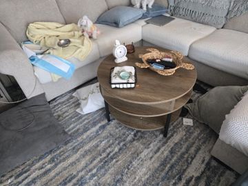 Allow approximately 14–18 inches between the coffee table edge and the sofa for comfortable legroom and easy reach. Round vs. rectangular coffee tables—what’s better? + Round or oval tables improve traffic flow and reduce sharp corners; rectangular tables pair cleanly with standard sofas; large square tables work well with sectionals. ... A lift-top coffee table uses a hinged mechanism to raise part of the top toward you, creating a higher surface for laptops or dining, often with hidden storage below.