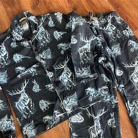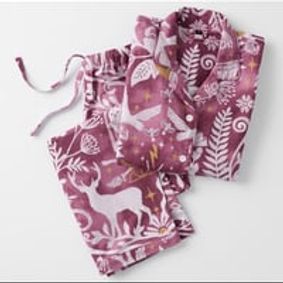 One Pajama Set by Pottery Barn Teen in the Harry Potter Hogwarts ChristmasCollection. Inspired by the Wizarding World™, this pajama set transports you to the magic of Hogwarts. Pajama top has buttons for closure, bottoms have elastic waistband.