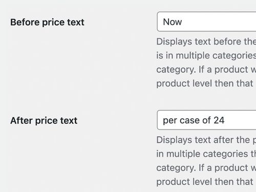 Add custom text before or after prices to highlight deals, units, or context. Make prices clearer and more persuasive.