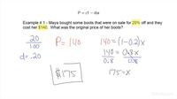 Question from dawn, a parent: ยท the sale tax on a cape was 6%,and total price with tax was $92.75,what was the price of the cape