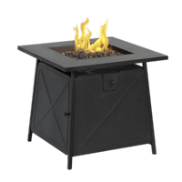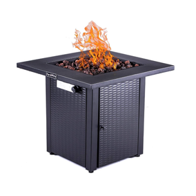 We use the term fire table for our rectangular or square concrete fire tables and fire pit for our smaller, circular metal propane fire pit.