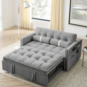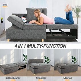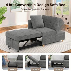 The pull-out couch bed chooses premium linen fabric material, which is durable and skin-friendly. Keep new as day one for years.Convertible Sleeper Sofa 3 in 1 linen Small Loveseat with Pull Out Bed, Reclining Backrest, Toss Pillows and Pockets.This sofa features a wonderful seating area, perfect for lounging, reading, or entertaining guests.