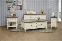 Select from the two-tone, gray, whitewash with gray, medium brown, and more options to direct the interior’s design. Choose from a few different pieces to set up a coordinated coffee table set so that you’ll have plenty of space for guests to put down drinks at parties or for you to decorate with centerpieces. Depending on the available space, there are several types of end and side tables from which to choose.