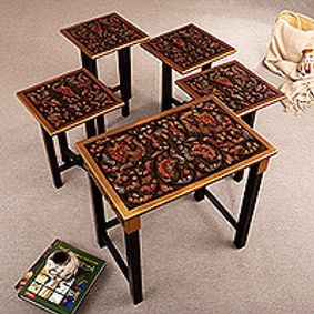 Artisans like Ghana’s George Obeng who creates unique tables reflecting the everyday life of his native country. George defied his family’s wish that he become a printer and went on to study sculpture in 1972 and now works in Mahogany and Ebony to create stunning end tables that have given this local West African artist a world-wide reputation.