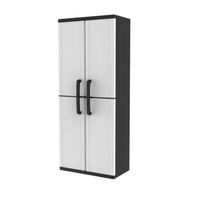 Clean up the garage by organizing tools, extension cords, gardening supplies, and more or keep the office or storage room clean and tidy with this lockable storage cabinet with shelves. Made from heavy-duty polypropylene, this utility storage cabinet with doors resists rust or peeling and the elements.
