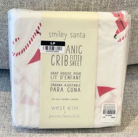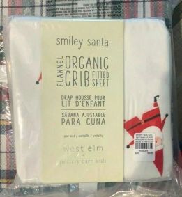 Pottery Barn Kids West Elm Modern Smiley Santa flannel crib sheet ChristmasOpens in a new window or tab