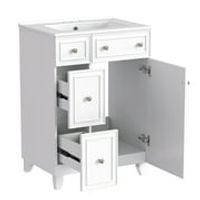 Transform your bathroom with this stylish 24" vanity cabinet, featuring a sleek ceramic sink, ample storage and golden handles, perfect for modern, small spaces.