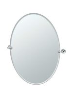 Suited for contemporary decor, the Elevate Frameless Oval Bathroom Mirror (24-Inch x 32-Inch) makes a bold statement. This pivoting mirror easily adjusts to your desired viewing angle and features minimal rosettes, smooth, geometric lines, and gleaming finish options. Its fully concealed mounting offers a polished look that can be installed in minutes! Manufactured by Gatco.Dimensions: 32" H x 24" W. 28 1/2" W Overall. Projection: 2".