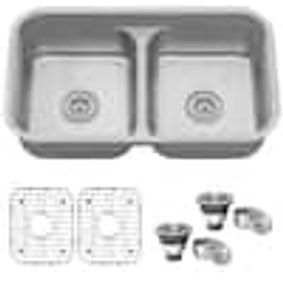homedepot.com › p › Ruvati-Urbana-30-in-Undermount-50-50-Double-Bowl-16-Gauge-Stainless-Steel-Kitchen-Sink-with-Rounded-Corners-and-low-divide-RVH7355 › 302958569