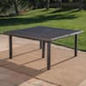 Contemporary Outdoor Square Gray Wicker Dining Table - NH365003 · Noble House · SKU: 16418 · Expandable Patio Dining Table, 64" - 81", Cast Aluminum, Shiny Copper - NH715703 · Noble House · SKU: 77899 · Grey Wicker Outdoor Patio Table - NH967692 · Noble House ·