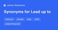 Find 26 different ways to say LEAD UP TO, along with antonyms, related words, and example sentences at Thesaurus.com.