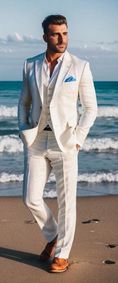 My fiancé (25M) and I are getting married in October in GA. It will be a beach wedding with a reception at a country club afterwards. Expected temps around 70s. I need help picking out attire for him since he isn’t formal at all (and he and his mom are insisting it be more formal wear for him.)