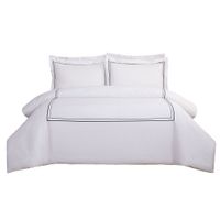 The SAVOIR king comforter set offers a clean, modern aesthetic that effortlessly elevates the look of any bedroom. This set includes a generously sized king comforter (259 x 218 cm) and two matching pillow shams (51 x 91 cm), all in a crisp white with elegant blue accent trim. The design adds a subtle touch of sophistication to your bedding without being overwhelming, making it easy to blend with a variety of décor styles.