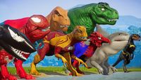 Legendary heroes and villains face off in dinosaur form in Jurassic World! Spiderman's frightening Terror Bird, Superman's gigantic Trex, King Shark, Carnage...