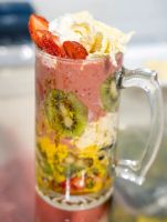 Strawberry slush, mango, banana, kiwi, black berry, blue berry syrup.