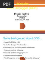 GEEP GDB Basics 24thFeb08 - Free download as (.odp), PDF File (.pdf), Text File (.txt) or read online for free. The document provides an overview of the GNU Debugger (GDB) including its history and features.
