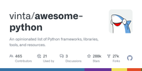 GitHub - vinta/awesome-python: An opinionated list of awesome Python frameworks, libraries, software and resources. · GitHub