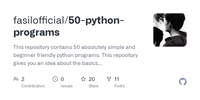 GitHub - fasilofficial/50-python-programs: This repository contains 50 absolutely simple and beginner friendly python programs. This repository gives you an idea about the basics of python language and libraries like math, random, tkinter, etc.. · GitHub