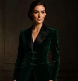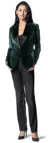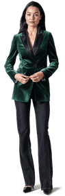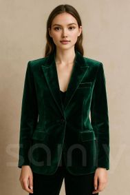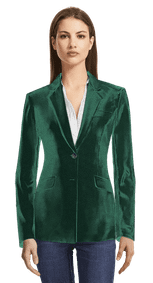 A green velvet blazer is a very special garment that matches very specific situations. At Sumissura you design your garment and we make it to your measurements. You can pick up the style details: lapels, buttons, fitting. Start with a green velvet blazer from our collection or design yours from scratch here: Women Velvet Blazers