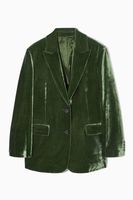 The classic velvet suit is a cornerstone of the festive wardrobe. Crafted from a sumptuous mulberry silk blend, this dark olive-green blazer is expertly tailored with a single-breasted close and designed with sharp peak lapels, a single vent to prevent creasing as you sit and a full lining so it's easy to layer. Style it with the coordinating trousers. Regular fitButton closureFunctioning buttoned cuffs, front flap pockets Shell: 83% Viscose, 17% Mulberry silk, Lining: 100% Viscose / Dry clean Back length of size EU 36 is 76cm / Model wears a size EU 36