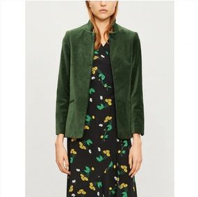 ME+EM's Olive Green Velvet Sharp Shoulder Blazer is made from Italian velvet that contains a blend of viscose and silk fibres. Shop now.
