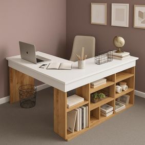 Wood L-shaped Desk - Storage & Solid Wood Options