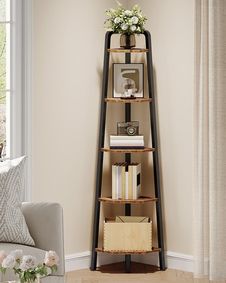 This 5 tier ladder bookshelf stands out for its ability to showcase your personal collections, books, and decorative items in an organized manner, the ladder shelf is perfect for small apartments or rooms that require efficient use of space