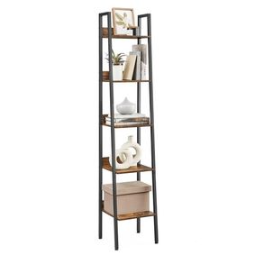 Add some industrial charm to your living space with the LLS46BX 5-tier industrial style ladder shelf by Vasagle. With its sturdy matte-black steel frame, x-bars, and rustic dark brown shelves - the mix of styles makes this elegant bookcase stand out.