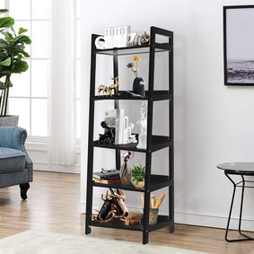 Buy 5-Tier Ladder Shelf Modern Bamboo Leaning Bookshelf Ladder Bookcase at Costway, enjoy great savings and discounts with fast, free shipping on everything. ● The rugged bamboo frame is durable and sturdy than wood · ● 5-tier open storage shelf provide plenty of storage space · ● Multifunctional display stand suit for lots of space · ● Space-saving and lightweight ladder shelf is suitable for corner · ● Non-slip foot pads ensure overall stable · ● Premium screws are not easy to rust and tightly connected · ● Wall-leaning ladder shelf is stable with a triangle structure · ● A good storage solu