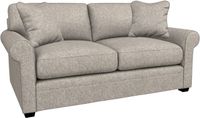 Turn any room into a stylish and functional guest room with the Leah Queen Sleep Sofa. Its sleek profile is perfect for smaller spaces, yet it opens up to become a super comfortable Queen bed, complete with a Supreme Comfort™ quilted innerspring mattress measuring 5.5" in thickness. By day, this sleeper is a true beauty too, with curving rolled arms, welt trim, and patented ComfortCore® cushions that provide optimum support for a long or short sit. Includes one 18" accent pillows.