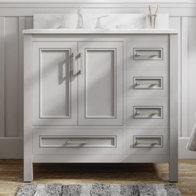 From compact powder room designs to spacious master bath setups, bathroom vanities offer storage, style and practicality in one unit. Whether you need a simple single sink or a statement-making double vanity, Lowe’s has a wide variety of options to complete your bathroom project.