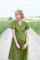 offonclothing.com › home › shop › linen dress with frill sleeves in moss green color