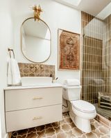 October 30, 2025 - It was outfitted with white walls, gray floors, and an IKEA HEMNES/ORRSJÖN vanity and matching medicine cabinet, which Chloë did love for the storage — she just wanted to liven up the color. (Again, the bathroom was overwhelmingly gray.) ... Chloë and Joe painted the walls of the bathroom a warmer tan (Benjamin Moore’s Seapearl).