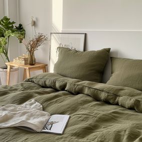 Our bedding comforters and duvet covers are thoughtfully made with durable thread, ensuring long-lasting use. The natural linen texture and soft green tone work together to promote relaxation and create a tranquil bedroom space. Thanks to its muted, neutral tone, sage green makes it easy to mix and match with other colors.