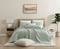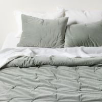Organic Cotton Linen Velvet Shadow Sage Green King Quilt + Reviews | Crate & Barrel Canada